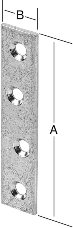 VORMANN Verbindungsblech; Oberfläche: verzinkt; Basis: Verbindungsblech; Material: Stahl; Anzahl Schraublöcher: 4St.; Länge: 120mm; Schraublochdurchmesser: 3,5mm; Breite: 18mm; Stärke: 2mm; Ergänzung: mit versenkten Schraublöchern