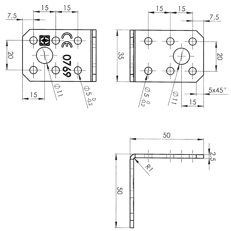 VORMANN Winkelverbinder; Basis: Winkelverbinder; Werkstoff: Stahl; Oberfläche: sendzimirverzinkt; Anwendbare Materialien: Holz,Holzwerkstoffe; Befestigung: Schrauben,Rillennägel; Anwendungsbereich: Holz/Holz; Winkel: 90°; CE-Kennzeichen: Ja; Länge Schenkel A: 50mm; Länge Schenkel B: 50mm; ETA-Bewertung: ETA-09/0311; Leistungserklärung DoP: DoP-ETA-003; Lochzahl Schenkel A: 7St.; Lochzahl Schenkel B: 7St.; Anzahl Nagelloch: 12St.; Anzahl Bolzenloch: 2St.; Breite: 35mm; Materialstärke: 2,5mm