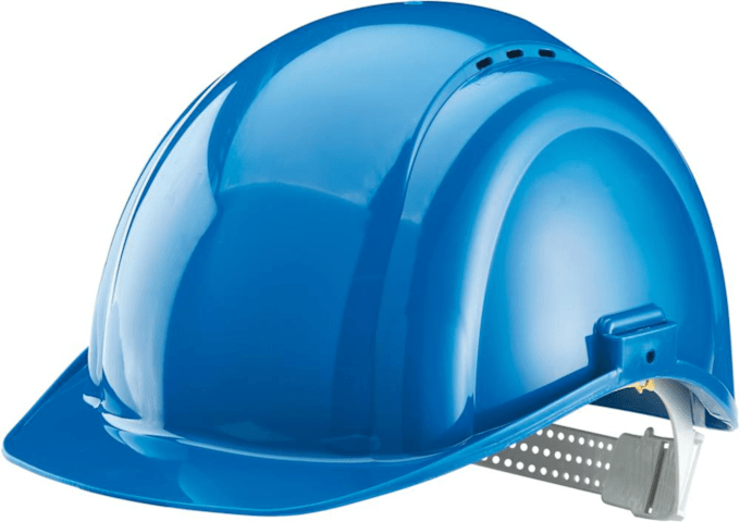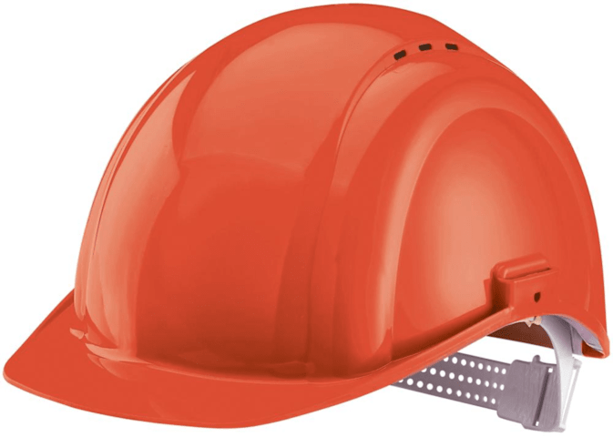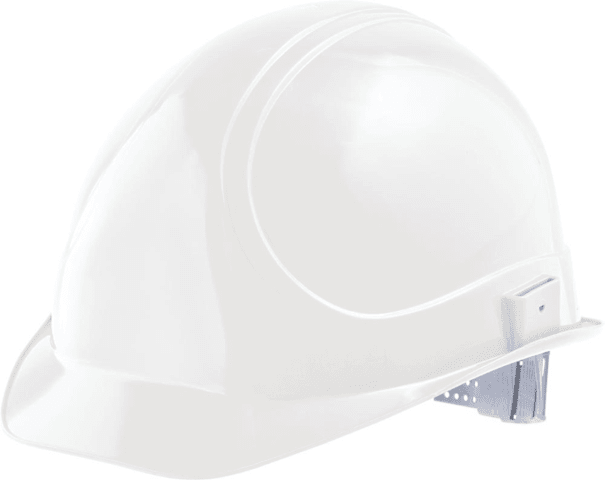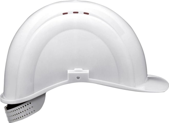 Bauschutzhelm INAP DEFENDER 4Material: Polyethylen (PE), Ausführung: nach EN 397, Helmschale im Nacken heruntergezogen, Aussparungen im Ohrbereich, seitliche Slots für Gehörschützer, mit Pin-Lock-Verschluss, Regenrinne, 4-Punkt-Gurtband, Innenausstattung mit Schweißband, verstellbar auf die Kopfgrößen 51-64 cm, einschließlich halber Größen, Temperaturen bis -30 °C, Helmschalengewicht: ca. 230 g.