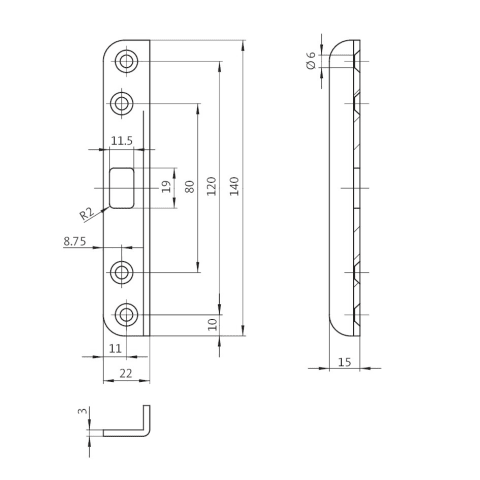 BKS Winkelschließblech B 9000; Produkttyp: Winkelschließblech; Produkttyp (Hersteller): Winkelschließblech; Ausfräsung: mit Riegelausschnitt; Material: Edelstahl; Einsatzbereich: Türrahmen; Form: rund