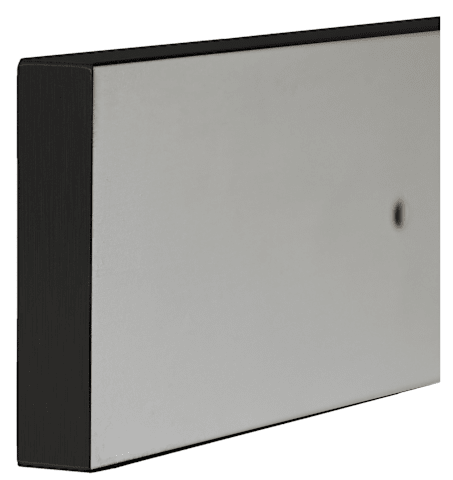 Wand/Deckenabstandsprofil MDF 16 mm, für Klemmbeschlag 9170 / 58 mm hoch, Profillänge 2000 mm, Bohrungen: 100 mm von außen, dann 200 mm Abstand, Oberfl. 74 (Classic Black, ähnl. RAL 9005)