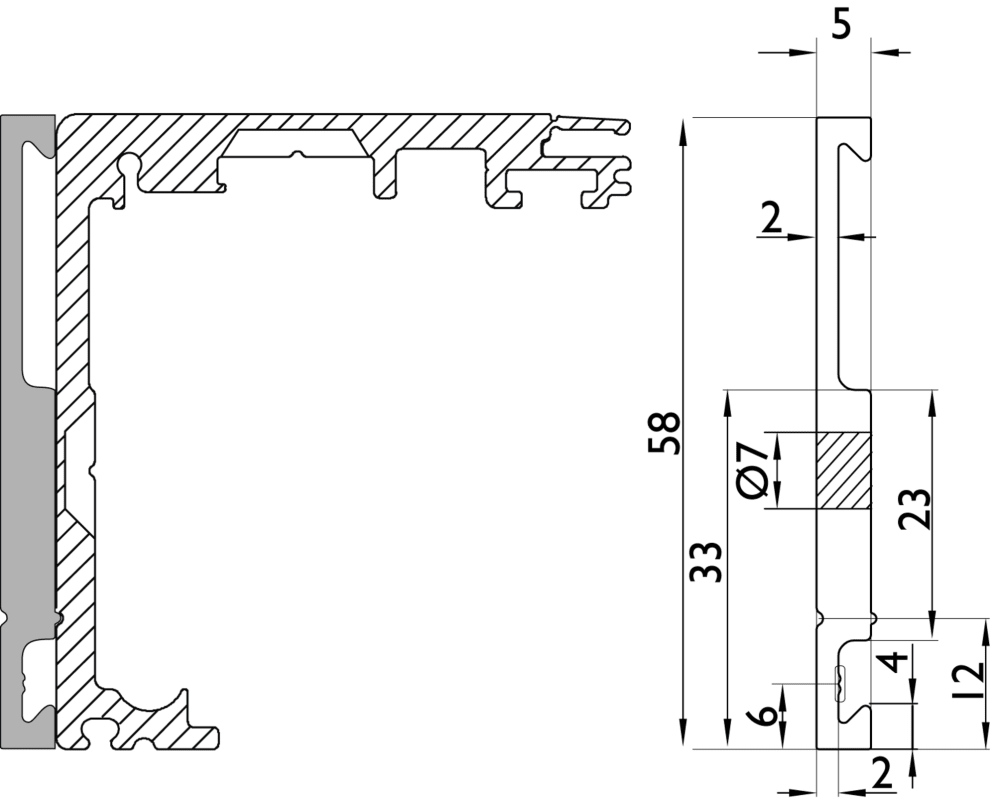 Wandabstandsprofil 5 mm, für Klemmbeschlag 9170, Profillänge 2400 mm, inkl. Endkappenpaar 9170 ABST, Oberfl. F9 (Edelstahlfarben)
