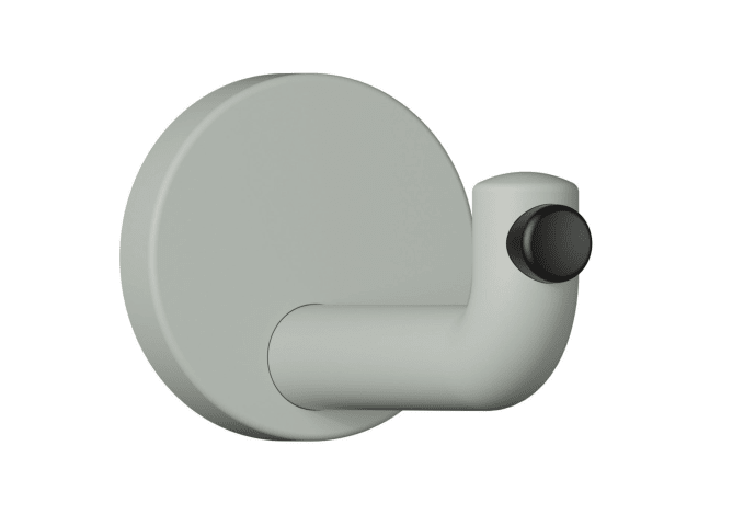 HEWI Haken 477.90B035; Ausführung: mit Rosette,mit schwarzem Türpuffer; Material: Kunststoff; Befestigungsart: verdeckt verschraubt; Einsatzbereich: Wand; Farbe: grau; Farbton: felsgrau; Tiefe: 105 mm