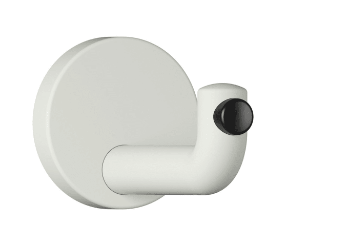 HEWI Haken 477.90B035; Ausführung: mit Rosette,mit schwarzem Türpuffer; Material: Kunststoff; Befestigungsart: verdeckt verschraubt; Einsatzbereich: Wand; Farbe: grau; Farbton: lichtgrau; Tiefe: 105 m