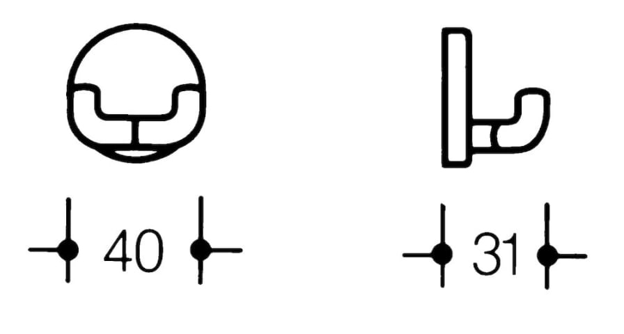 Doppelhaken der Serie 801. Doppelhaken mit Befestigungsrosette. Ergonomisch und funktional in einer einfachen und zeitlosen Formensprache gestaltet. Der Doppelhaken dient zum Aufhängen von Wäschestück