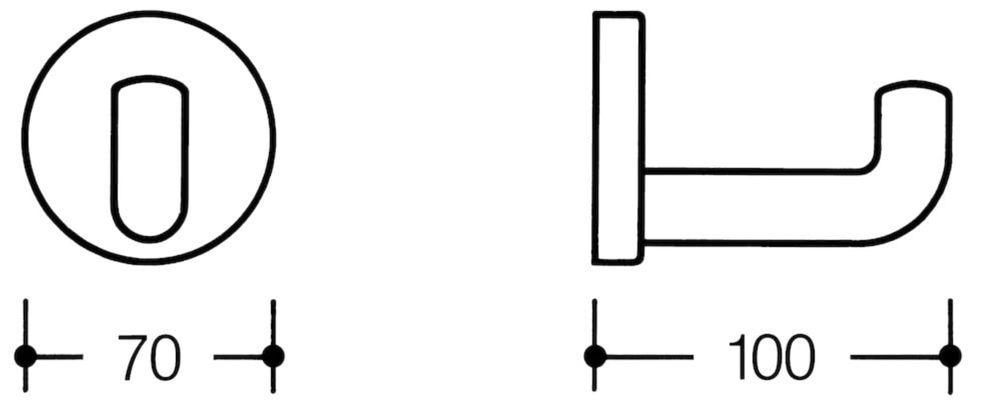 HEWI Einzelhaken, groß der Serie 477, rechtwinklig gebogener, zylindrischer Haken mit Befestigungsrosette, diebstahlgeschützt durch verdeckte Verschraubung, aus hochwertigem Polyamid, Lieferung ohne S