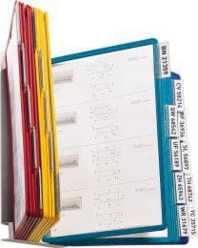Wandhalter VARIO®, Komplett-Set • Material: pulverbeschichtetes Metall • Mit farbigen Sichttafeln aus Polypropylen inklusive Reiter • Besonders geeignet für Werkstätten, Verkaufs- und Ausstellungsräume • Problemlos an Wänden oder Lochwänden montierbar • Zapfenmechanik ermöglicht ein einfaches Herausnehmen und Einfügen der Sichttafeln Lieferumfang: 1 Wandhalter aus Metall, Befestigungsmaterial, 20 Sichttafeln A4, je 5 Stück in den Farben rot, gelb, grün, dunkelblau.