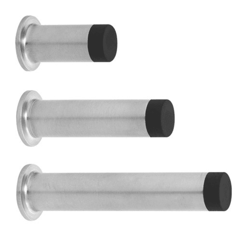BKS Wandtürstopper B 7122; Material: Edelstahl; Befestigungsart: verdeckt verschraubt; Befestigungstechnik: mit Verdrehsicherung; Höhe Anschraubplatte: 3 mm; Einsatzbereich: Objekttür; Basis: Wandtürstopper; Ausführung: mit einseitigem Gummipuffer; Durchmesser: 19 mm; Länge: 106 mm; Farbe Gummipuffer: schwarz; Farbton: edelstahl; Form: rund; Oberfläche: matt; Lieferung: mit Montagezubehör; Durchmesser Anschraubplatte: 28 mm