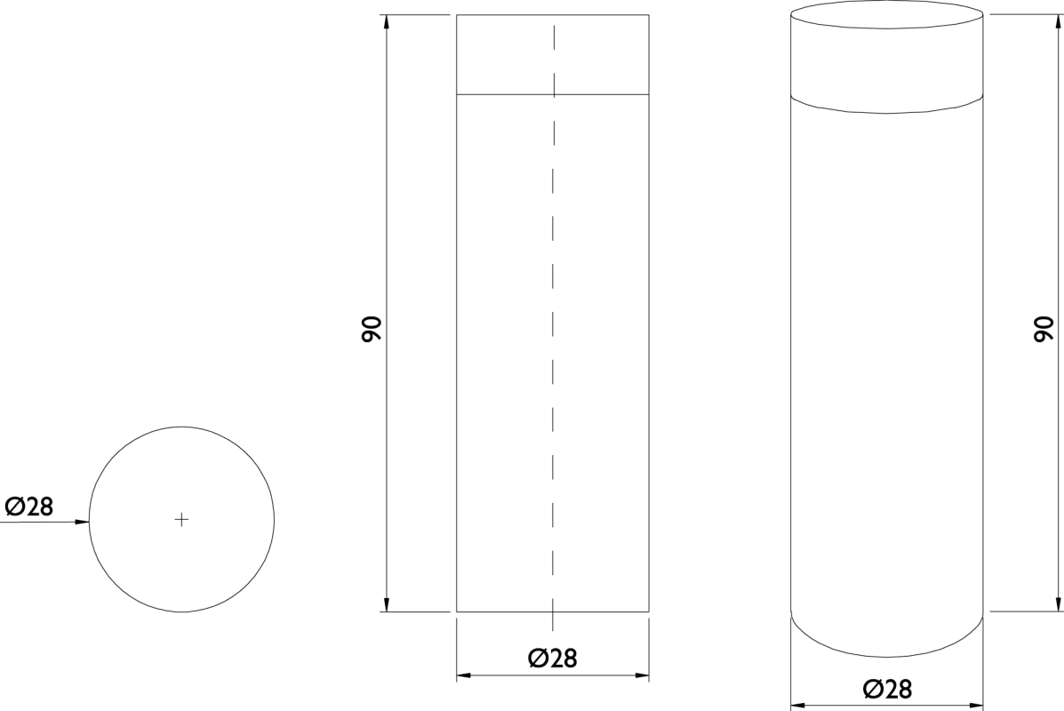 Wandtürstopper 3692 TS, Ø 28 mm, Länge 90 mm, mit Holzschraube 5 x 45 mm, Dübel Ø 8 mm, Oberfl. 60 (Edelstahl matt)