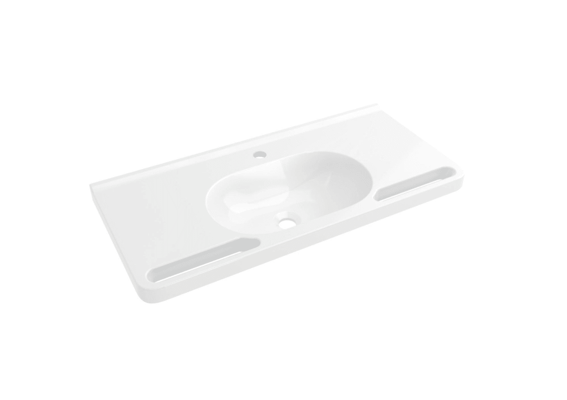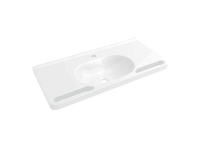 Meesenburg Artikelbezeichnung: WASCHTISCH SCHWALLKANTE RUNDE MULDE 850X400 1 HAHNLOCH