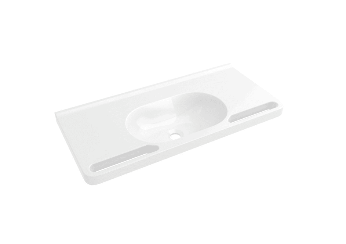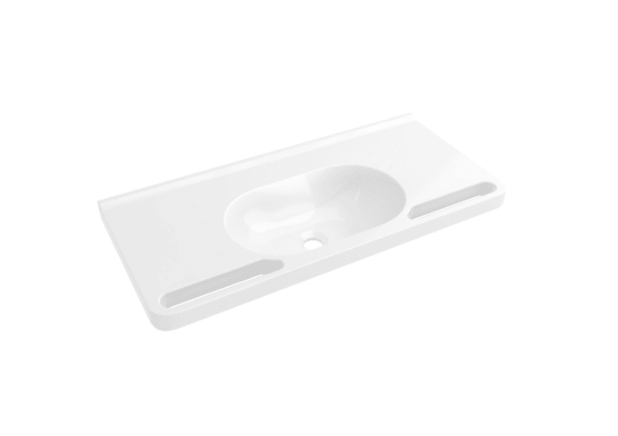Meesenburg Artikelbezeichnung: WASCHTISCH SCHWALLKANTE RUNDE MULDE 850X400 O.HAHNLOCH