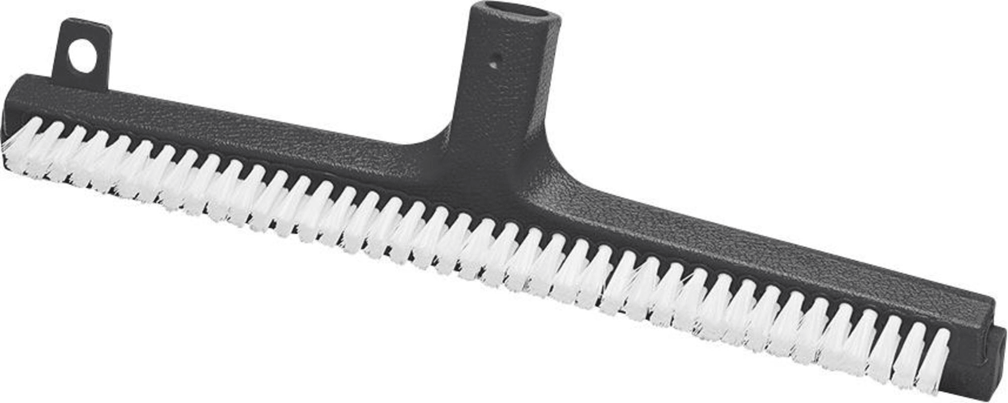 Wasserschieber, mit Borstenleiste • Zwei Geräte in einem – Wechsel von Abziehen zu Scheuern einfach im Handumdrehen • Angeschweißte PP-Borsten sind problemlos unter fließendem Wasser zu reinigen, da kein Stanzdraht verwendet wurde und somit kein Rost entsteht • Alle gängigen Reinigungsmittel können verwendet werden • Der Abzieher ist aus Moosgummi-Doppelstreifen gefertigt • Mit Gewinde