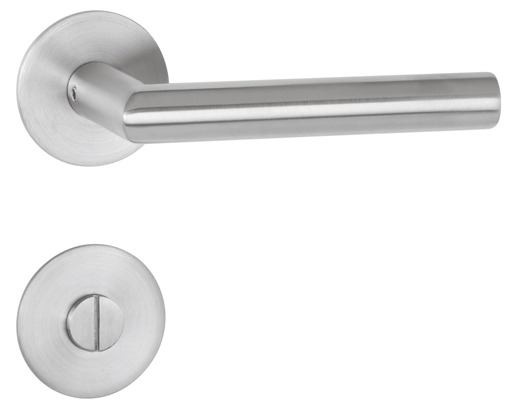 Bad-Drückergarnitur 1802 BASIC 02, mit MAGCLIP Rosetten 2636 FL & RHF, Ausf.: BAD, mit WC-Riegel 3221/3216, 6 mm Vierkant, mit Hülsen 7/8 mm, Türstärke 37 - 47 mm, Oberfl. 60 (Edelstahl matt)