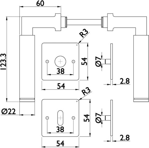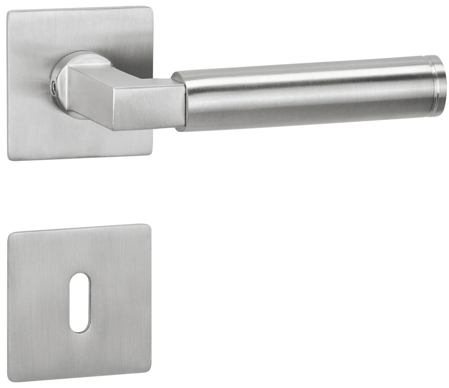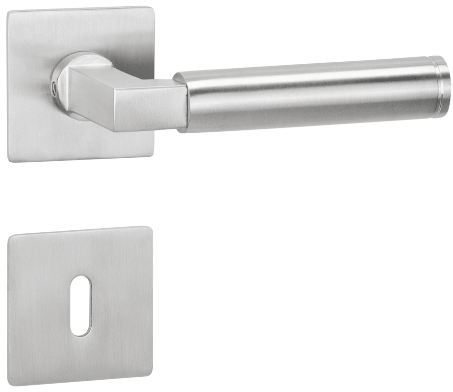 Bad-Drückergarnitur 1831 INFINITY, mit MAGCLIP Rosetten 2611 FL & RHF, Ausf.: BAD, mit WC-Riegel ktg. 3220/3225, 6 mm VK, mit Hülsen 7/8 mm, Türstärke 37 - 47 mm, Oberfl. 60 (Edelstahl matt)
