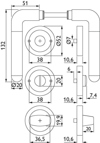 Innentür-Drückergarnitur Club 1110/2031, mit runden Rosetten. Ausstattung: Mit Rückholfeder in der Drückerrosette.