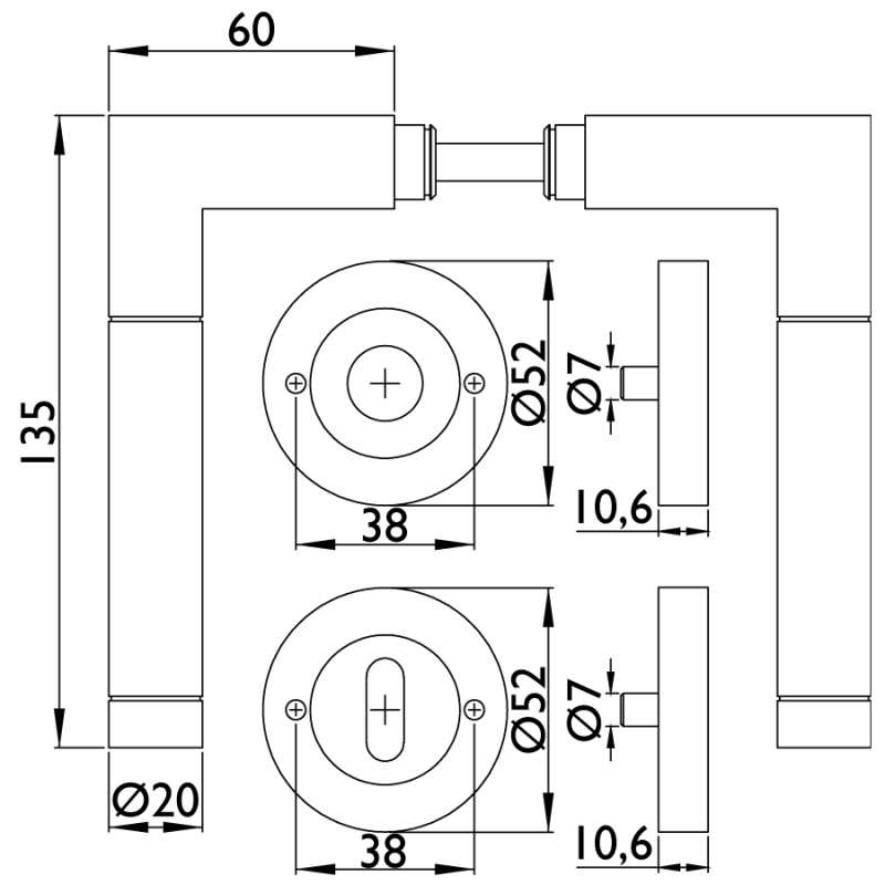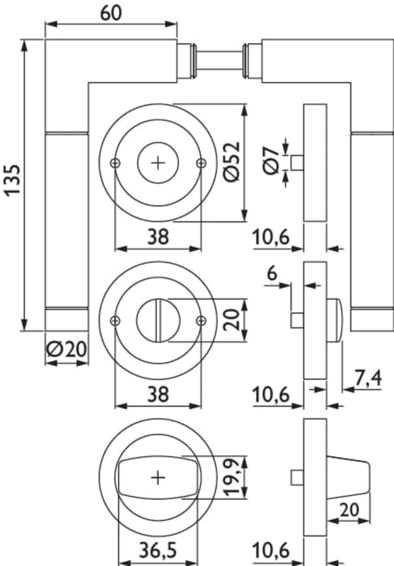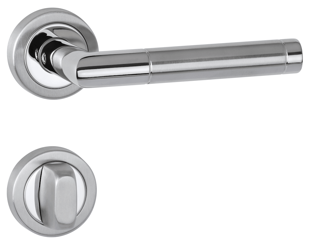 BAD Drückergarnitur 1114 ER SPACE. Eigenschaften: • mit Rosetten 2031 - für Tst. 38 - 42 mm • mit Rückholfeder • Ausführung Bad mit Riegel 3212/3216 - 6 mm Vierkant mit Hülse 7/8 mm • Oberfläche 63 (