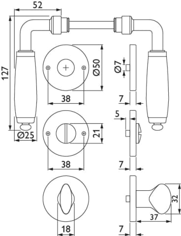 Hermat Drückergarnitur 1157/2074,Ros.,rd.,WC/S,8(8),glanzchr./Porz.ws.