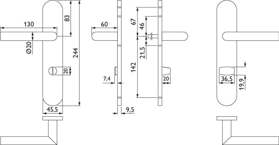 Innentür-Drückergarnitur BASIC 02, mit Langschild.