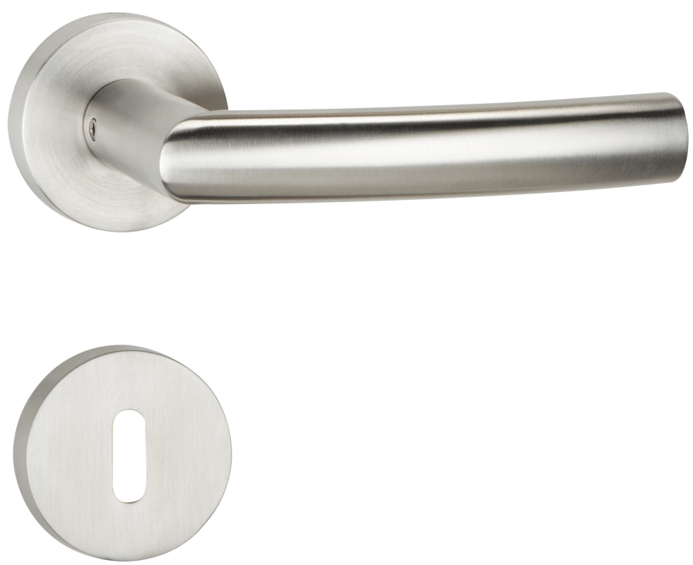 Innentür-Drückergarnitur BASIC 07, mit Smart-Clip Rosetten und Rückholfeder.