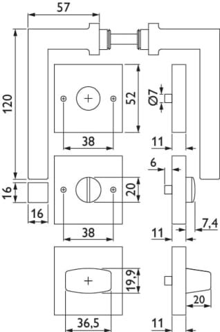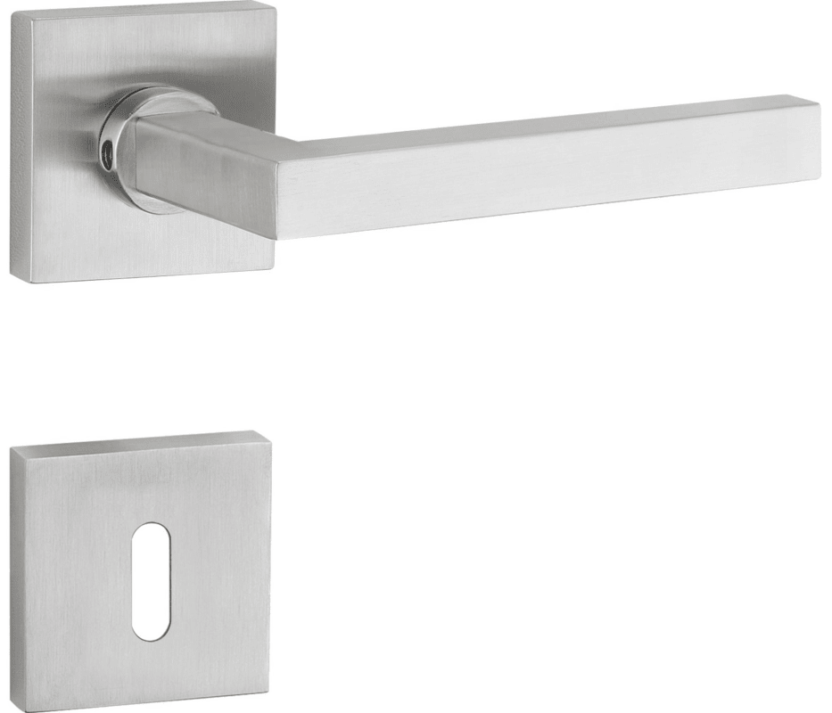 Drückergarnitur mit Rosetten, mit Rückholfeder.