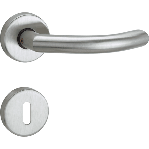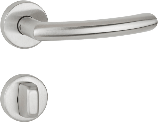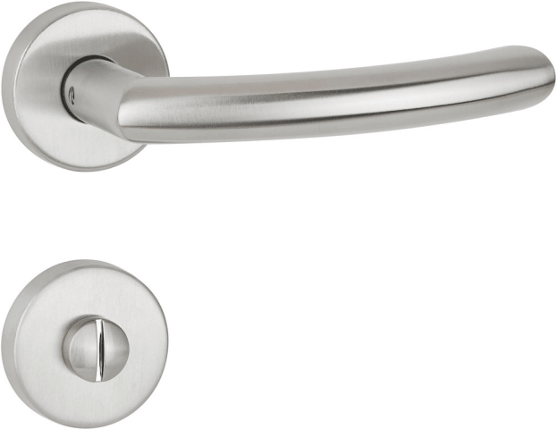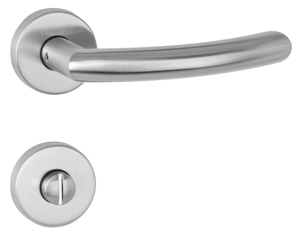 Bad-Drückergarnitur 1804 BASIC 04, mit Rosetten 2036 K, Ausf.: BAD mit Riegel 3212/3216 - 6 mm Vierkant, mit Hülse 7/8 mm, Türstärke 38 - 42 mm, Oberfl. 60 (Edelstahl matt)