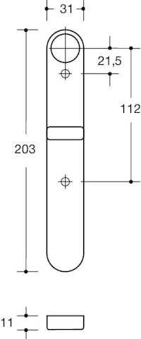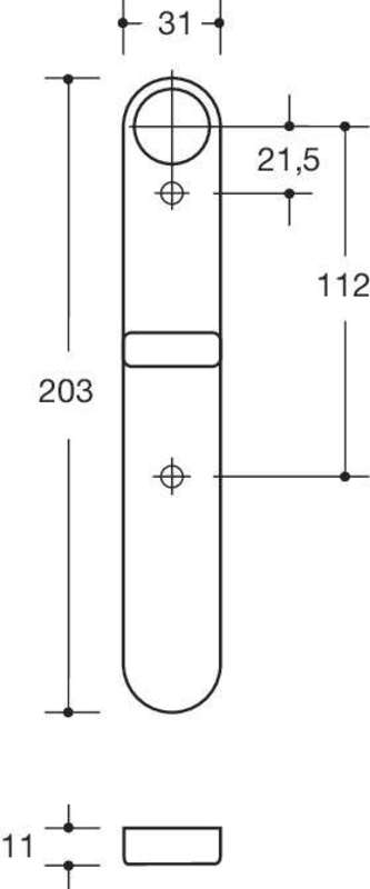 HEWI Kurzschildpaar 217.23RNR; Produkttyp: Kurzschildpaar; Produkttyp (Hersteller): Kurzschildpaar; Form: oval; Befestigungsart: verdeckt verschraubt; Anwendung: außen/innen; Material: Kunststoff; Material Unterkonstruktion: Kunststoff-Edelstahlverbundbau; Länge: 203 mm; Breite: 31 mm; Höhe: 11 mm; Türart: Rohrrahmen; Einsatzbereich: Tür; Norm: DIN EN 1906,DIN 18255; Ausführung: für Türdrücker; Stütznocken: mit Stütznocken; DIN-Richtung: DIN Links-Rechts; Farbe: schwarz; Farbton: tiefschwarz; Oberfläche: hochglanz; Lochung: WC Schauscheibe/Schlitzkopf; Entfernung: 78 mm; Durchmesser Drückerführung: 23 mm; Lagerung: Gleitlager,festdrehbar; Riegel-Vierkant: 8 mm; Türstärke min.: 38,1 mm; Türstärke max.: 43 m Lieferumfang: Lieferung mit Schrauben