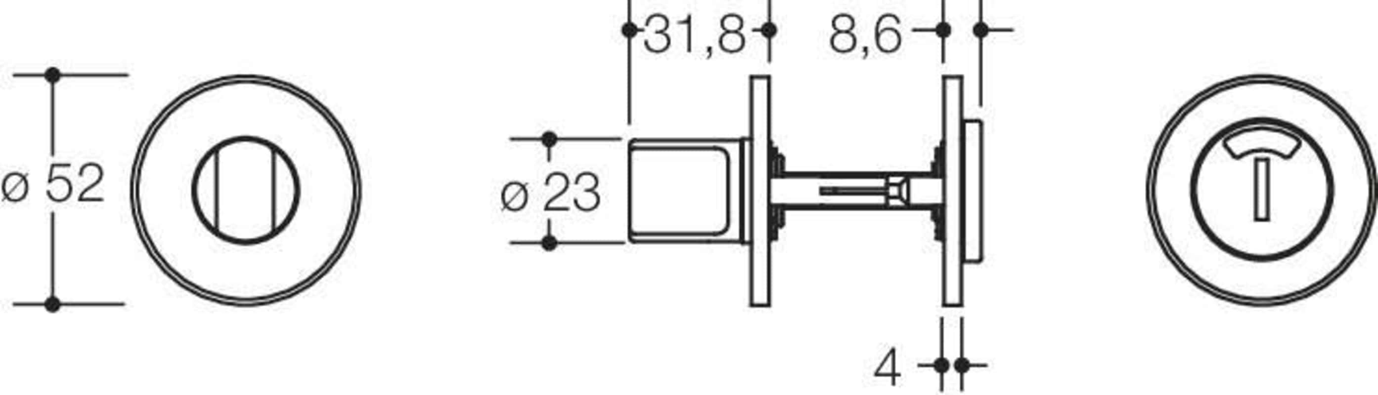 HEWI Schlüsselrosettenpaar 306.23PBXINR; Produkttyp: Schlüsselrosettenpaar; Produkttyp (Hersteller): WC-Rosette; Anwendung: außen/innen; Form: rund; Befestigungsart: verdeckt verschraubt; Montageart: aufliegend; Material: Kunststoff; Durchmesser: 52 mm; Befestigungsabstand: 38 mm; Material Rosetteneinleger: Kunststoff; Einsatzbereich: Tür; Türart: Vollblatt; Lochung: WC Schauscheibe/Schlitzkopf; Farbe: grau; Farbe Rosetteneinleger: weiß; Farbton: edelstahl; Farbton Rosetteneinleger: reinweiß; Oberfläche: matt; Oberfläche Rosetteneinleger: matt; Stütznocken: mit Stütznocken; Höhe: 4 mm; Riegel-Vierkant: 8 mm; Türstärke min.: 43,1 mm; Türstärke max.: 48 mm