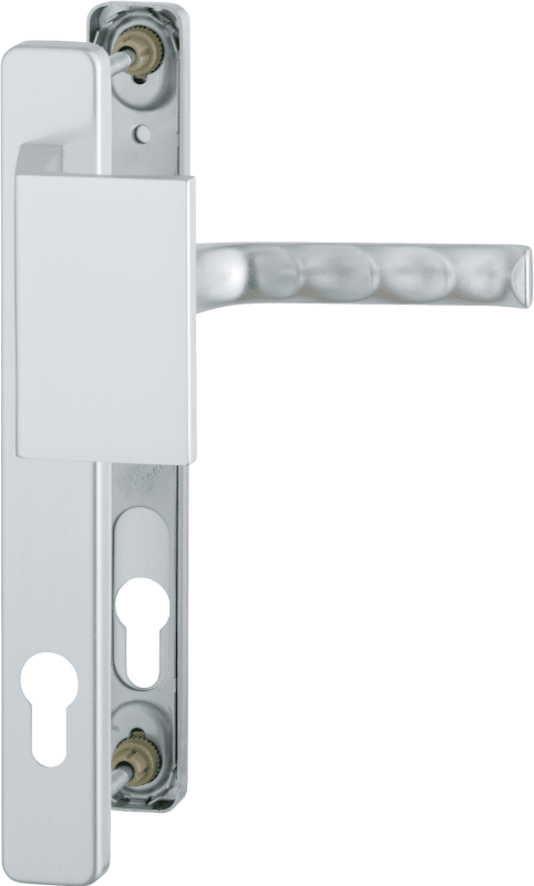 HOPPE Wechselgarnitur London 504/2246/113, Langschild, eckig, Profilzylinder gelocht, Entfernung 92mm, Vierkant 8mm, DIN Links-Rechts, Türstärke 67 - 72mm, mit Stütznocken, naturfarben eloxiert, festd