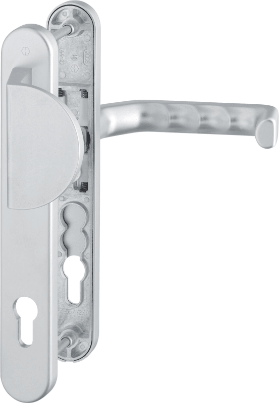 HOPPE Wechselgarnitur Liverpool 554/3357N/1313G, Langschild, oval, Profilzylinder gelocht, Entfernung 92mm, Vierkant 8mm, DIN Links-Rechts, Türstärke 67 - 72mm, mit Stütznocken, natur matt eloxiert, f