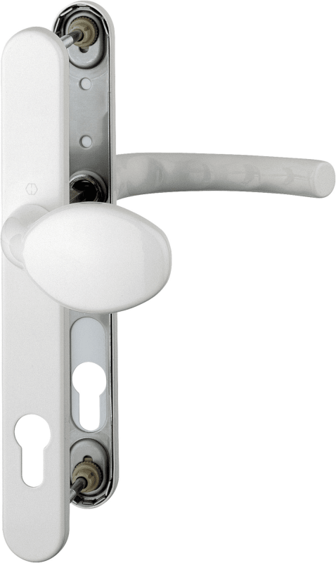 HOPPE Wechselgarnitur Tokyo 76G/3346/1710RH, Langschild, oval, Profilzylinder gelocht, Entfernung 92mm, Vierkant 8mm, DIN Links-Rechts, Türstärke 57 - 62mm, mit Stütznocken, verkehrsweiß beschichtet,