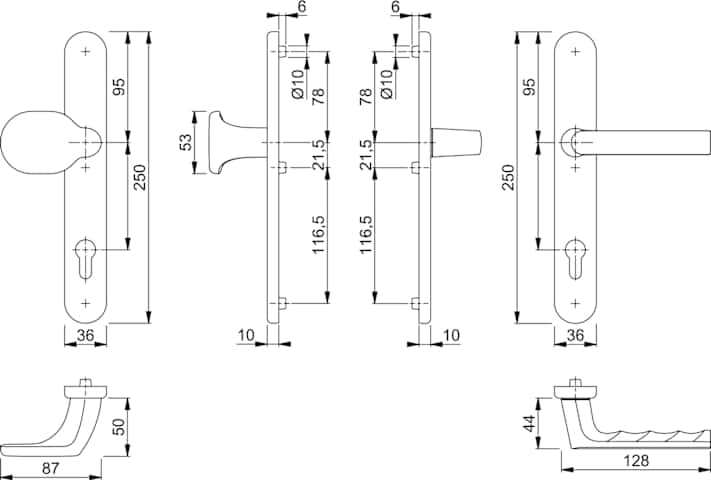 HOPPE Wechselgarnitur Hamburg 86G/3357N/1700FA, Langschild oval, Profilzylinder gelocht, Entfernung 92mm, Vierkant 8, DIN Links-Rechts, Türstärke 72 - 82mm, mit Stütznocken, bronzefarben eloxiert, war