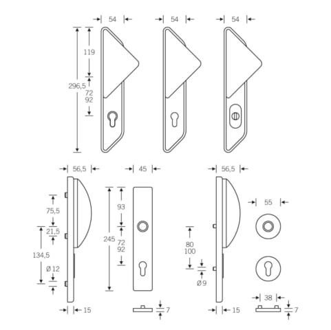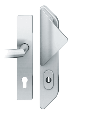 Design-Schutz-Wechselgarnitur, Schutzklasse 4, mit Kernziehschutz. Innen- und Außen mit Langschild.