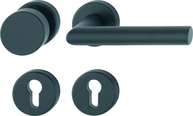 HOPPE Wechselgarnitur Amsterdam 58/42H/42HKVS/1400, Ausführung Türgriff (außen) fest, Rosette, rund, Profilzylinder gelocht, Vierkant 8mm, DIN Links-Rechts, Türstärke 40 - 45mm, mit Stütznocken, schwa