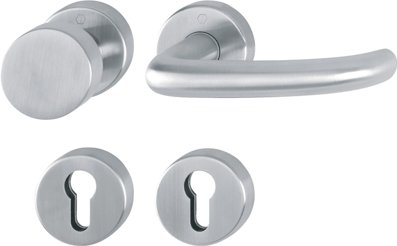 HOPPE® Wechselgarnitur San Francisco FS-E58/42H/42HS/1301; Material: Edelstahl; Befestigungsart: verdeckt verschraubt; Befestigungstechnik: mit Stütznocken; Vierkant: 9 mm; Befestigungssystem: Steckverbindung; Abdeckung: mit Rosetten; Lagerung: festdrehbar,Gleitlager,wartungsfrei,Rückholfeder,Sertos®; Form: rund; Benutzerklasse: Klasse 3; Einsatzbereich: Feuerhemmend; Basis: Wechselgarnitur; Lochung: Profilzylinder gelocht; Türstärke min.: 40 mm; Türstärke max.: 65 mm; Norm: DIN 18273,DIN EN 1906,DIN EN 179; Zulassung: für Feuerschutz,für Rauchschutz,für Notausgänge; DIN-Richtung: DIN Links-Rechts; Durchmesser: 52 mm; Farbton: edelstahl matt; Türart: Fluchttüren,Außentüren; Drückerbefestigung: Wechselstift mit Rolle; Anschlagrichtung: Drücker rechts/links verwendbar; Eigenschaft: Knopf fest auf Rosette; Knopfdurchmesser: 50 mm; Knopfhöhe: 32 mm; Türwerkstoff: Holz,Aluminium,Stahl; Material Unterkonstruktion: Stahl; Drückerhöhe: 65 mm; Drückerlänge: 131 mm; Knopfform: rund; Stärke Abdeckung außen: 10 mm; Stärke Abdeckung innen: 10 mm; Drückerform: gebogen