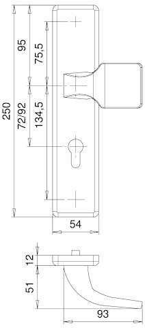 Vollblatt Sicherheits-Wechselgarnitur Lana 8756/0172,Langschild,ES 0,ohne Zylinderabdeckung 72/8,DIN Links-Rechts,naturfarben eloxiert,Türstärke35-45,eckig/gekröpft fest
