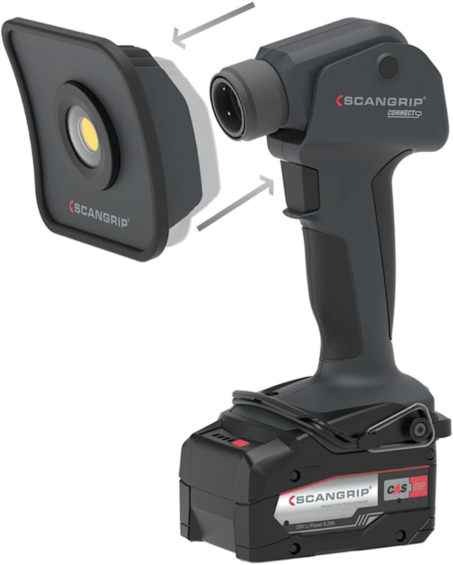 LED-Arbeitsleuchtenkopf FLOOD HEAD CONNEC • Passend zu Akku-Handgriff MULTILIGHT BODY CONNEC • Fest verbaute COB-LE • Leuchtstärke in 2 Stufen (100/50 %) einstellba • Kunststoffgehäus • Schutzart IP