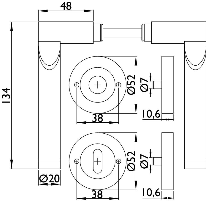 Hermat Drückergarnitur 1126/2031,Ros.,rd.,WC/SS,8(8),gl.chr./ER ma.,TS 38-42