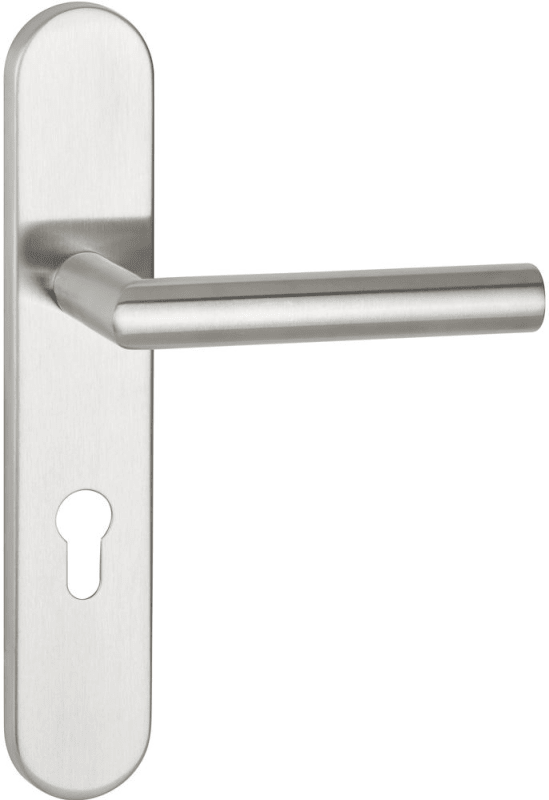 ZT-Wechselgarnitur 1802 mit Langschild 2002U. Technische Daten: • Befestigung unsichtbar • beidseitig verwendbar • Ausführung: PZW 72 mm / Knopf 3127 • Oberfläche 60 (Edelstahl matt) • Lagerung: Gleitlager • Lager festdrehbar: Nein Lieferumfang: ZT-Wechselgarnitur 1802, mit Langschild 2002U, Knopf 3127