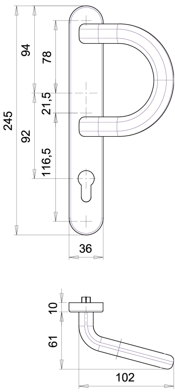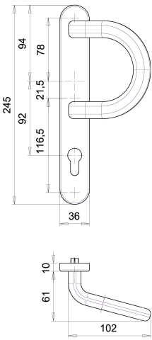 Dieckmann EST-Rahmen-Wechsel-Garnitur mit Bügelgriff, Serie Kronos, 8mm VKT, 92 PZ, Alternativ-Bohrbild, 2005/B1/035 F00