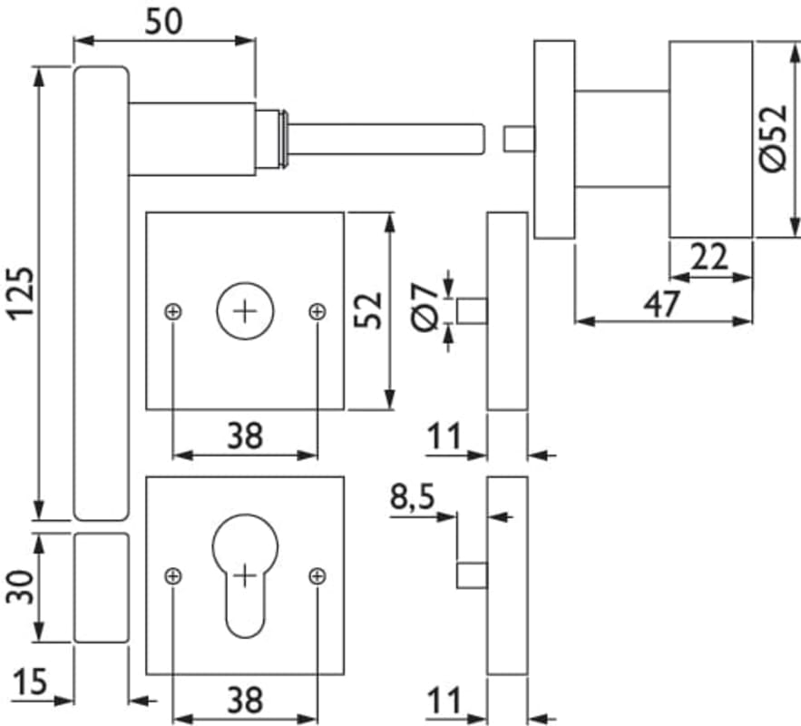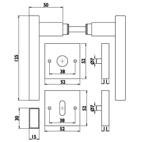 Innentürgarnitur DIRECT, mit Smart-Clip Rosetten, fest/drehbarer Lagerung und Rückholfeder.