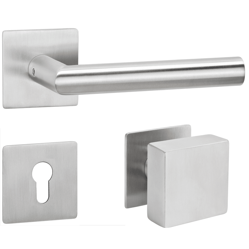 ZT-Wechselgarnitur 1802 BASIC 02, mit MAGCLIP Rosetten 2611 FL & RHF / Knopf 3127 K, Ausf.: PZW DIN rechts, fest/drehbar, mit Rückholfeder, Tst. 37 - 47 mm, Oberfl. 60 (Edelstahl matt)
