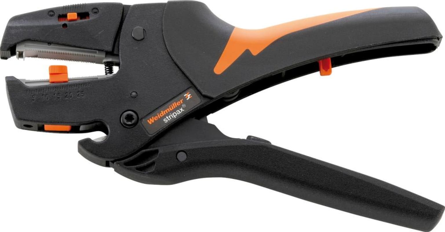 Automatische Abisolierzange stripax®• Gehäuse aus Kunststoff • Abnehmbare Griffschalen • Lamellenmessertechnik stellt sich automatisch auf die Isolationsstärke ein • Patentierte Teilabisoliermöglic
