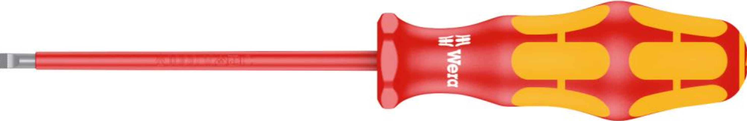 VDE-Schraubendreher für Schlitz-Schrauben, Nr. 160 i• Runde Klinge • Lasertip-Spitze, verhindert das Herausrutschen aus dem Schraubenkopf • Kraftform-Griff • 6-kant-Abrollschutz • Kopfprägung mit