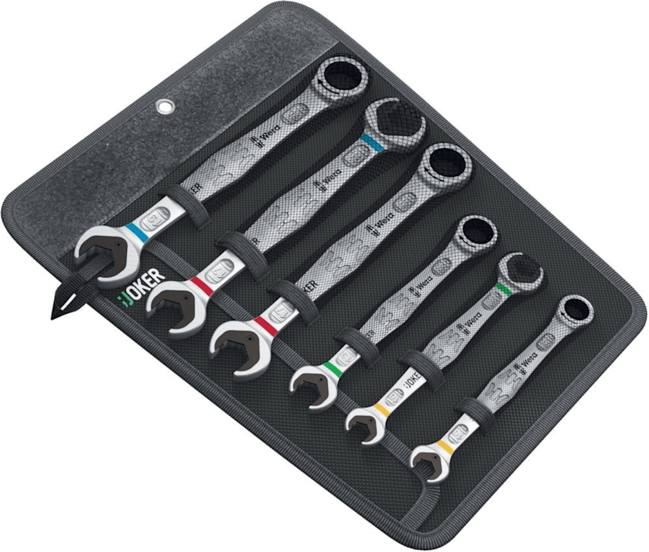 Doppel-Maul-Ringratschen-Schlüssel-Satz, Nr. 6000/6002 JOKER 6 Set 1• Nickel-Chrom-Beschichtung • Chrom-Molybdän-Stahl • Maulstellung gerade • 6-kant-Profil • Haltefunktion • Endanschlag • Doppe