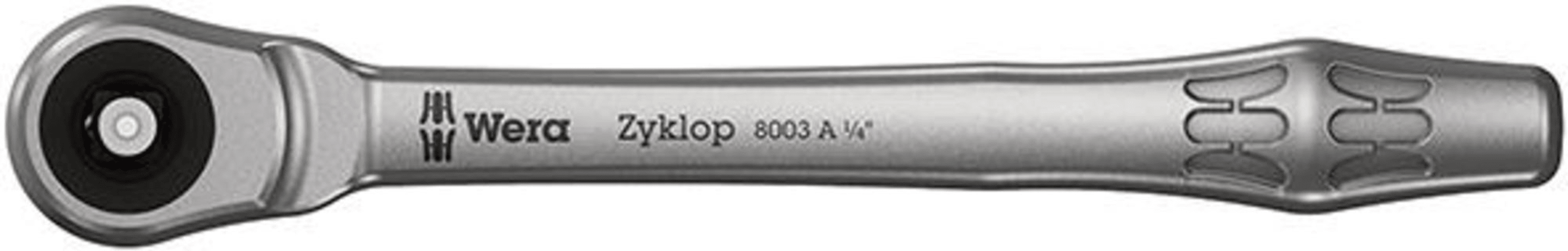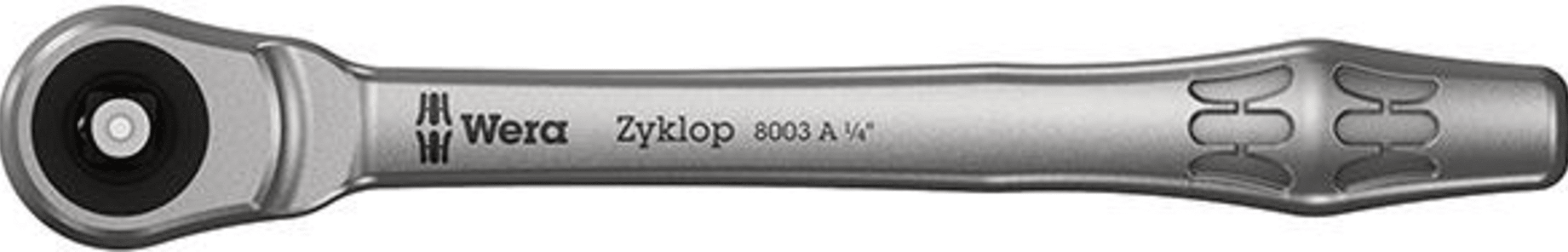 Durchsteckknarre 1/4", Zyklop Metal, Nr. 8003 A• Vollmetall, geschmiedet • Chrom-Molybdän-Stahl • Druckknopfauslösung für Aufsteckwerkzeuge • Umschaltung mittels Durchsteck-4-kant • 4-kant-Abtrieb