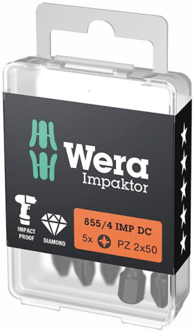 Bit-Sortiment Bit-Box 5 Impaktor PZ• Diamantbeschichtet mit Torsionsbereich • DIN 3126-C 6,3, ISO 1173 • Impaktor-Technologie für überdurchschnittliche Standzeiten • Geeignet für den Einsatz mit ha