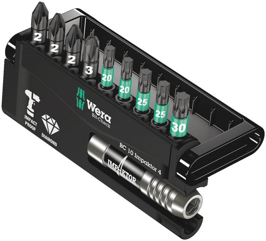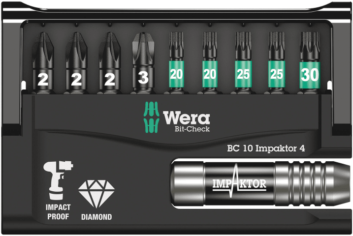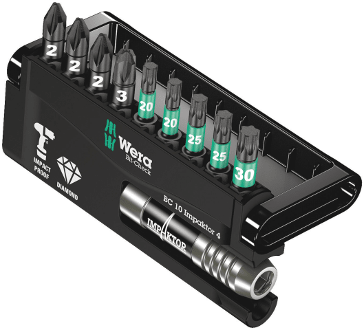 WERA BIT-CHECK 10 IMPAKTOR 4 10 TLG. M. 9 BITS TX/PZ + HALTER 05057417001