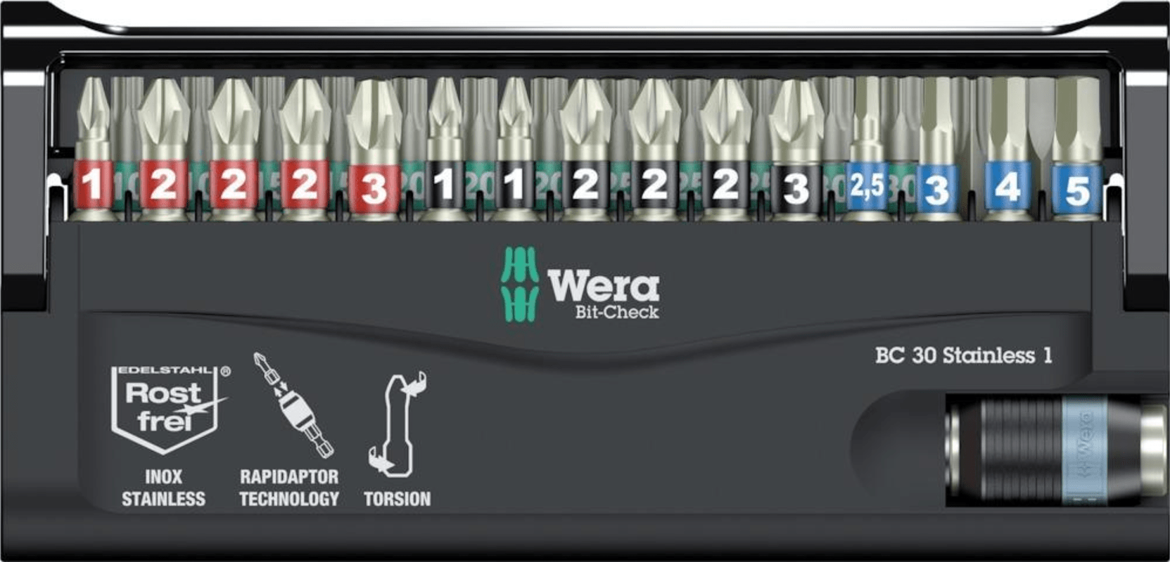 Bit-Sortiment Bit-Check 30 Stainless 1• Edelstahl • Torsionsbereich • Für den universellen Einsatz • Verhindert das Ansetzen von Fremdrost beim Verschrauben von Edelstahlschrauben • Take-it-easy-W