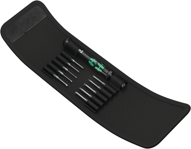 Kraftform Kompakt Micro-Set für feinmechanische Anwendungen; geeignet für die Aufnahme von Bits mit 4 mm Halfmoon-Antrieb (Wera Reihe 9) und Bits mit 4 mm HIOS-Antrieb (Wera Reihe 21); Griff-/Wechselklingen-System für blitzschnellen Klingenaustausch; Kraftform Micro Griff mit drehbarer Kappe und Schnelldrehzone für blitzschnelles Zwirbeln; kein zeitintensives Umgreifen mehr nötig; Kraftzone mit integrierten Weichzonen zur Übertragung hoher Löse- und Anzugsmomente; Präzisionszone direkt über der Klinge für den richtigen Drehwinkel bei Justierarbeiten; mit 10 Bits für hand- und maschinenbetätigte Verschraubungen; blitzschnelle Bit-Fixierung: Bit einfach in die Aufnahme schieben, selbsttätige Verriegelung, sicherer Sitz. Zum Bitwechsel Hülse einfach nach vorne schieben und Bit entnehmen; freilaufende Betätigungshülse zur einfachen Führung des Werkzeugs während des Schraubvorgangs.
