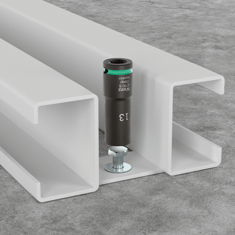 Lange Steckschlüssel für tiefliegende Verschraubungen, auch für passende, überstehende Gewindestangen in engen Bauräumen geeignet